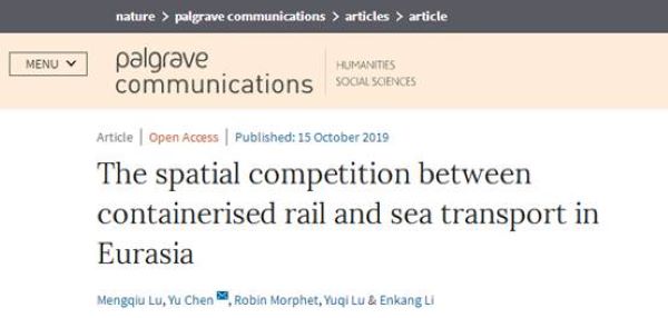 近日,我院2019年新引进的陆梦秋博士在“一带一路”领域取得重要研究进展。论文“The Spatial Competition Between Containerised Rail and Sea Transport in Eurasia”在nature子刊《Palgrave Communications》发表(文章链接:https://www.nature.com/articles/s41599-019-0334-6)。这是我国“一带一路”倡议提出以来在国际顶级期刊上发表的重要原创性研究成果,是我院国际化的一项标志性成果。论文对“一带一路”进行了空间...