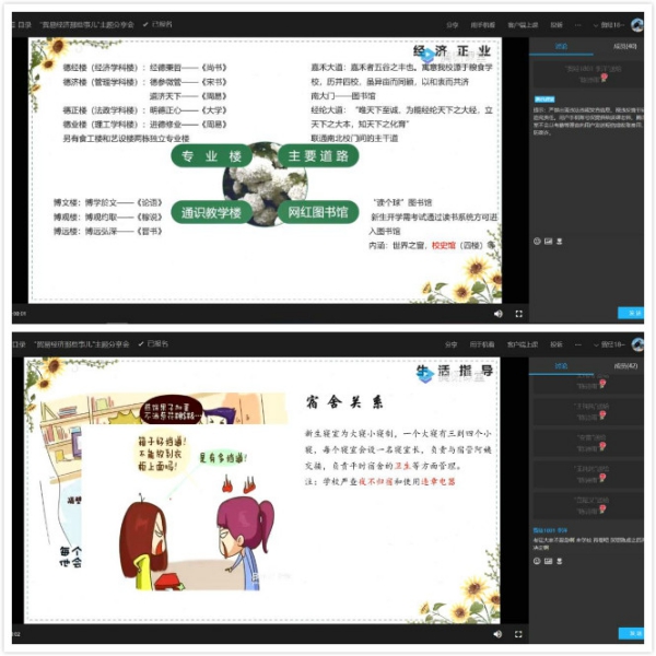 临近九月,开学在即。为了迎接2020级的小萌新们,我院贸经专业的学长学姐们早早就准备好了一份特殊的礼物。作为过来人的他们最了解小萌新们这时迫切想知道的:所学专业怎样?学校有哪些社团?舍友间该如何相处?大学该如何规划?......为了给新生们指路引航,2020年8月23日晚8点,以“初识南财——贸经那些事儿”为主题的线上分享会开讲,主讲人为贸经1802班陈诗雨学长,参加人员为2020级已录取的新生。本次迎新分享会,主要分...