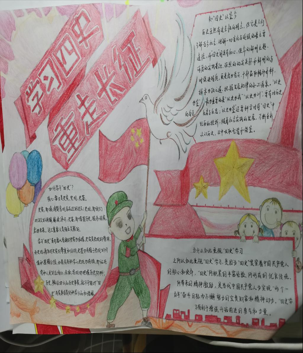 为丰富“四史”学习教育的形式,引导广大研究生党员更加深入地学习“四史”,增强党性修养,我院研究生党支部于2020年11月份开展了学“四史”主题手抄报活动,在党支部书记张东霞老师的号召下,全体党员参与此次活动,以四、五人为一小组,协同合作,绘制出一幅幅精美的手抄报作品。在制作“学习四史,重走长征路”手抄报的过程中,党员们认真查找阅读相关资料,认真学习党史,从历史中汲取养分和智慧,形成自己的知识结构,弄...
