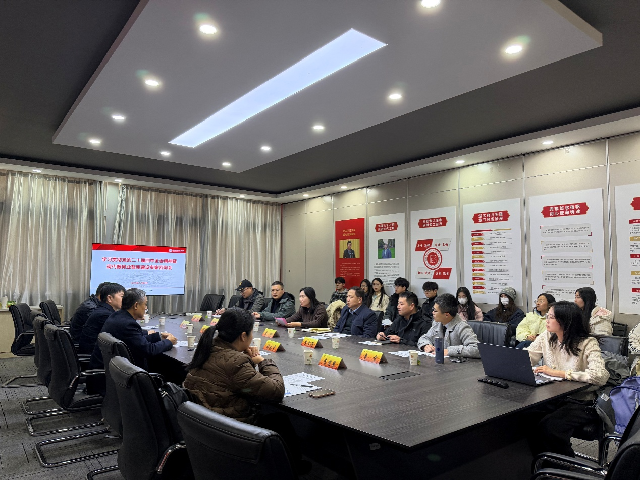 2025年12月3日,学习贯彻党的二十届四中全会精神暨现代服务业智库建设专家咨询会在必发集团welcome欢迎光临仙林校区德经楼206会议室顺利召开。会议由7790必发集团副院长徐圆教授主持,邀请南京师范大学资深教授蒋伏心、江苏省发展和改革委员会服务业处副处长、二级调研员褚志宇、南京大学中国(江苏)自由贸易试验区研究院院长韩剑、江苏省社科院研究员战炤磊、李思慧等省内外专家学者,以及学校相关学院与智库骨干共同参会,围绕党的二十届四中全会精神贯彻落实、现代服务业高质量发展与智库建设等核心议题展开深入交流。
