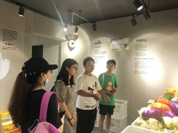 中心运营服务专员吴影为团队成员讲解了钱仓村整体的农业运作模式,并带领小队成员观看了企业、产品的线下展示平台,具体介绍了南京田原牧歌农业发展有限公司。该公司是团中央“精准扶贫·助力农产品上行”优秀项目、南京市农业产业化龙头企业。据吴影介绍,公司的蔬菜基地往年主要的销售路径是机关单位和学校的食堂,但因前期疫情影响,公司第一季度的销售额同比下降了20%,故在5月7日参与了政企联合举办的“一村一品 邀您尝鲜”的助农直播行动,希望通过书记带货的模式扩大销路,增加品牌知名度,尽全力弥补亏损。