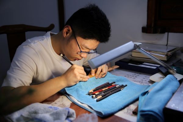 (图为范千里在进行竹刻创作 周佳茹摄)