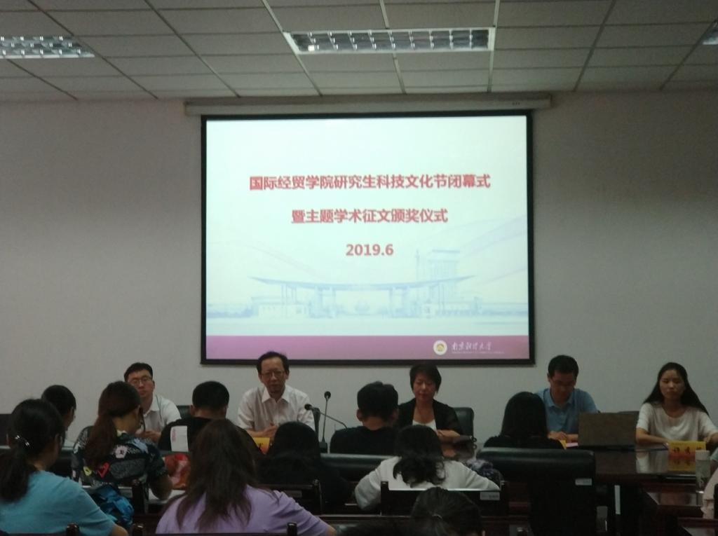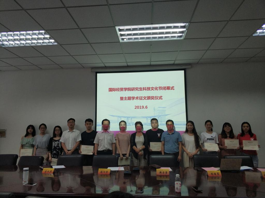 6月20日下午,国际经贸学院在德经楼308会议室举行了研究生科技文化节闭幕式暨“悟两会精神 铸学术华章”主题学术征文颁奖仪式。学校党委研究生工作部部长韩力争,7790必发集团党委书记张阳军,副院长杨继军、余泳泽,研究生辅导员许秀芳以及全体研究生参加了此次闭幕式暨颁奖仪式。仪式由张阳军书记主持。