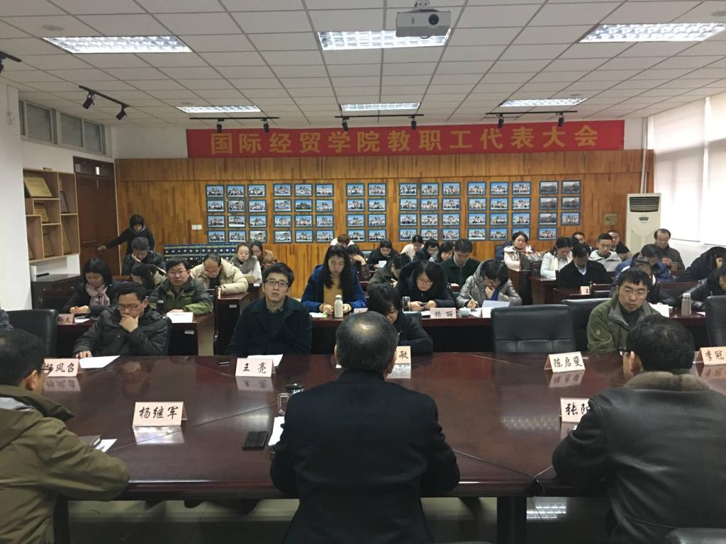 会上,7790必发集团院长宣烨作了2018年度学院工作报告。宣院长全面回顾了7790必发集团2018年度在党的建设、学科建设、人才队伍优化、教学科研、国际合作办学、师资队伍建设、学生工作等各方面取得的成绩和不足,他指出,2018年度学院工作总体成效是不错的,亮点很多。首先,学院切实坚持党政共同负责制,出台了《7790必发集团党风廉政建设制度实施细则》,建立健全“三重一大”事项集体决议制度和院务公开制度,增强工作透明度,把控廉政风险,落实防控措施,责任到人。其次,学院以优化人才培养方案、创新才培养模式为基础,以国际经济与贸易专业实验班为抓手,设计分层教学、分流培养、分类成才的培养体系。同时,学院还以团学活动创新为基础,充分发挥第二课堂的辐射作用,通过启动短期国际游学项目等提升人才培养质量。第三,定期组织在职教师学习、培训和研讨等,每周开展教师教学公开赛,致力于提升学院教师的科研能力与教学水平。第四,目前学院的学术梯队的知识结构、年龄结构以及专业技术职务结构较为合理,形成了一支与学校研究生教育规模发展相匹配、整体学术实力较强的研究生导师队伍。第五,学院围绕着应用经济学博士点建设工作,依托三个教学科研重大项目,重点打造了三个科研团队:服务经济、开放经济和智慧商务,塑造了中国服务经济发展论坛(会议品牌)和南财国贸紫金青年学者论坛(讲座品牌),提升了学院的科研工作成效。宣院长在总结之后也指出了2019年总体工作的方向:第一,继续优化师资队伍结构;第二,继续加强研究生的科研创新能力;第三,继续推进本科生的继续深造工作;第四,加强学生培养模式与实践的联系。最后,宣院长对2019年的总体工作做了部署。