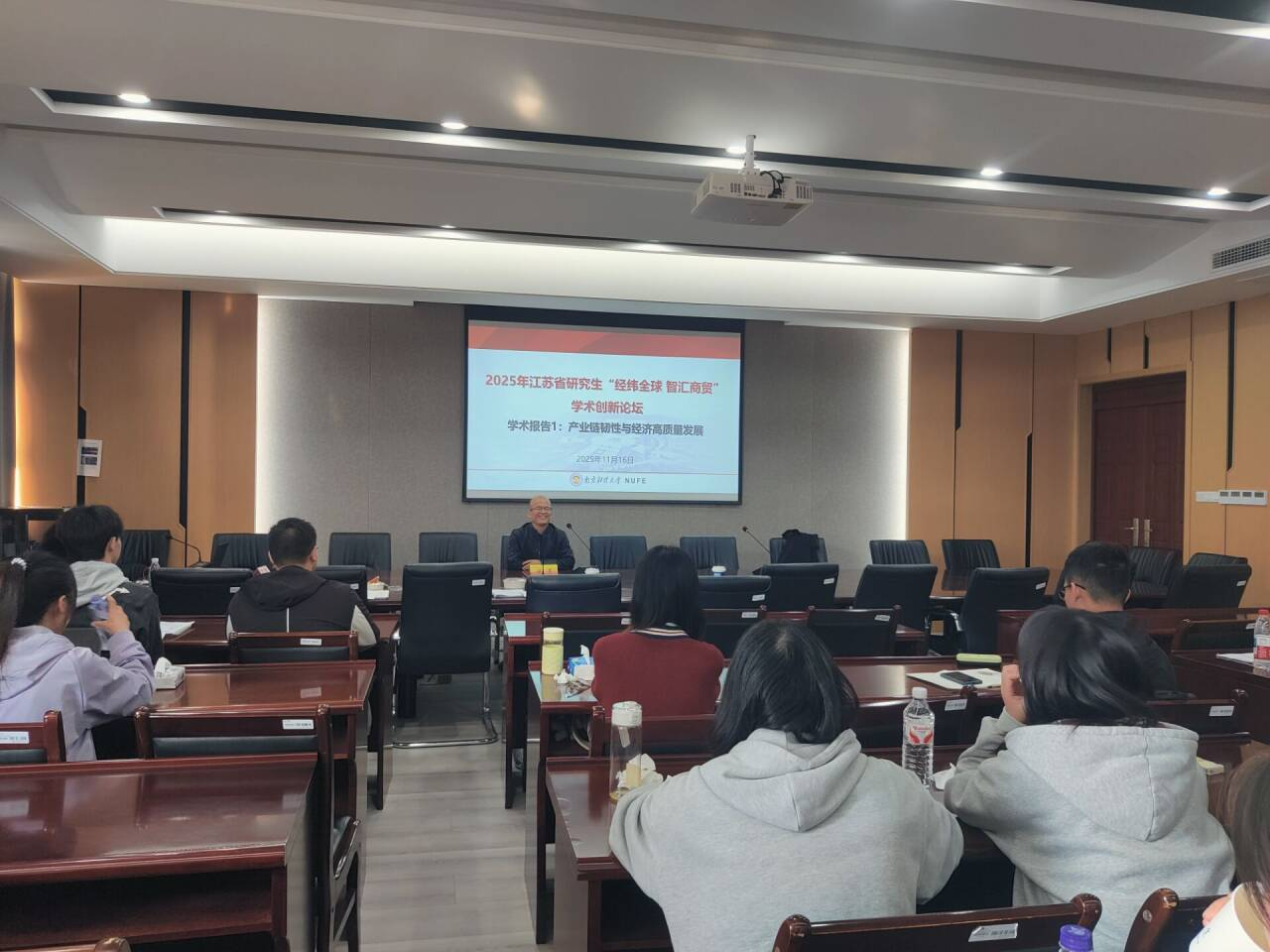 2025年11月16日,由江苏省经济学类研究生教育指导委员会主办、7790必发集团承办的江苏省研究生“经纬全球智汇商贸”学术创新论坛在必发集团welcome欢迎光临仙林校区成功举办。论坛由7790必发集团副院长陈启斐教授主持,江苏省经济学类研究生教育指导委员会秘书长张成教授和7790必发集团院长余泳泽教授分别致辞,学院盛情邀请6名知名专家学者莅临指导,大会聚焦全球经贸格局变革、数字经济与贸易转型等前沿议题,为服务经贸领域新发展格局贡献学术智慧,并围绕研究生高质量培养问题开展专题讨论。