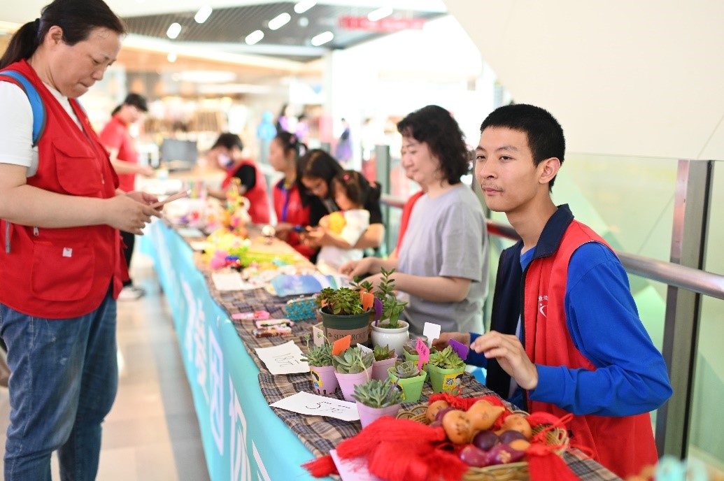 下午两点,义卖活动正式开始,制作用心的工艺品很快吸引到了很多顾客,志愿者和学员们一道,热情地向来往的顾客介绍工艺品的制作工艺,推销精美的义卖品。在志愿者与学员们的推销下,越来越多的人被吸引,主动到摊位上挑选商品。在言谈交流中,顾客们体会博爱之家学员们的辛勤与努力,大家都深感动容,纷纷表示自己愿意尽自己的一份力帮助学员们,买下了义卖品。每当一份义卖品卖出,学员和志愿者们的脸上的自豪都更添一份,阳光洒在每个人的身上,想必在学员们心中也种下光的种子,因为在这片土地,他们用劳动赢得收入,获得关怀和欣赏,这个世界充满光明。
