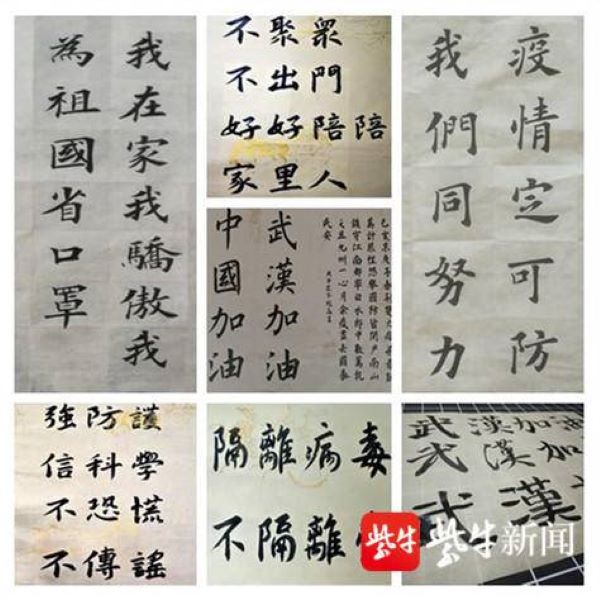 书写者贸经1901团支部经晶同学介绍:“书法给人们留下的刻板印象往往是严肃高雅的,用端庄的书法形式写下押韵的防疫宣传标语,想通过鲜明有趣的反差让大家更好的记住防疫措施。”商务1702团支部的团支书任正兰同学说:“标语虽短,但字字情意千钧重,一撇一捺尽是关心。通过组织同学们以书法、习字的形式为武汉加油,不仅让同学们静心体会书法之美,也丰富了同学们的宅家生活。”