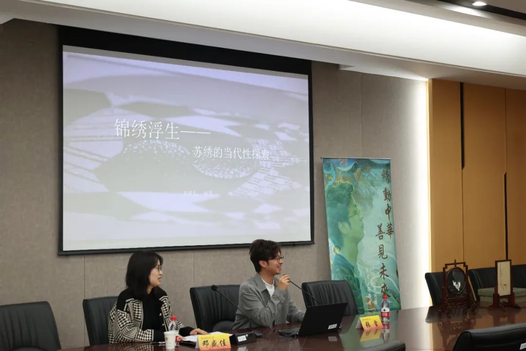 在学院开展的“绣动中国,善见未来”主题讲座上,张雪向同学们讲述了从事苏绣工作的历程,介绍了自己在当代创新苏绣的探索。张雪用青年的独特审美视角探索了苏绣更多的可能性,将苏绣与二十四节气结合,与现代产业联动,《佛》、《凤凰于飞》等精美的苏绣作品让同学们赞叹不已。张雪作为新时代青年的代表,坚持不懈与时俱进的优秀品质值得同学们学习。国贸2201班的潘羽萱说到:“张雪老师创业的勇气以及锲而不舍的魄力让我敬佩,我要做到像老师说的那样,先好好学习,掌握好现在学习的专业课程,增加自身的知识储备,为以后更好的发展打下坚实基础。”