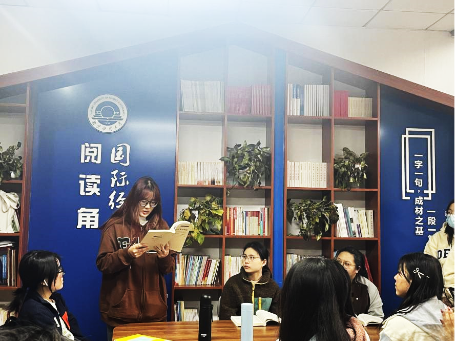 视频播放后,贸经2202杨楠楠同学分享了她印象最深的一个片段——习近平总书记引用明代诗人王阳明在《教条示龙场诸生》中的一句话说到:青年志存高远,就能激发奋进潜力,青春岁月就不会像无舵之舟漂泊不定。正所谓“立志而圣则圣矣,立志而贤则贤矣”。她感慨道:“作为新青年,我们一定要有远大的理想,坚定的信念,成为推动国家与民族前进的动力!”。在熟读精思活动中,同学们共读党的二十大报告,在学习交流中体会习近平总书记“三不负”要求,激励自己只争朝夕,不负韶华,扬起梦想的风帆。