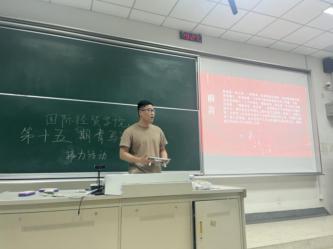 5月19日晚,我院第十五期青马班于德经楼101教室举行了党史学习教育、团课接力主题活动。各小组分别派代表进行了团课分享。