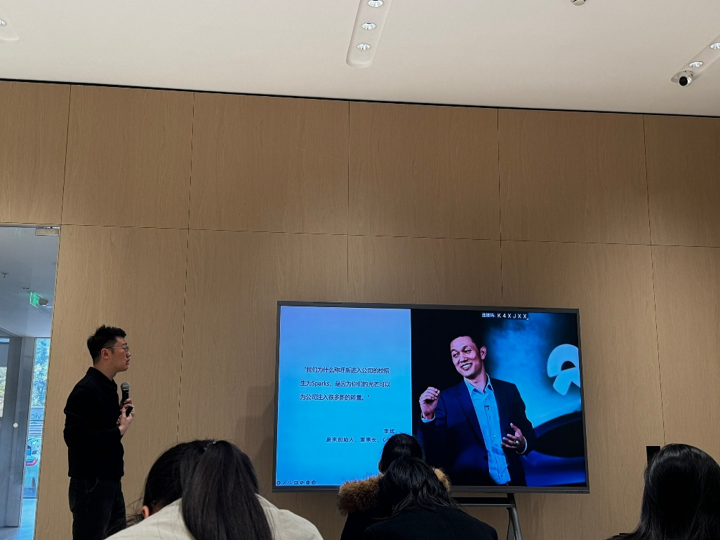 针对学生普遍关注的职业发展议题,蔚来公司详细介绍了面向高校毕业生的Sparks培养计划。该计划以“潜力挖掘+精准赋能”为核心,为学生定制个性化培训路径,提供岗位实践、项目参与和导师指导等多维支持,助力学生实现从校园到职场的平稳过渡。活动中,多名学生主动与人力资源负责人沟通交流,就实习安排、能力要求、发展通道等问题进行咨询,表现出清晰的职业探索意识与积极的行动力。