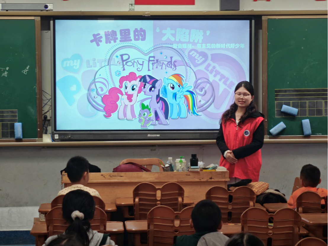 学院本科第二支部学生党员化身 “财商讲师”,围绕三大特色财经微课主题,以趣味化、生活化的形式,为孩子们开展为期三天的财商启蒙系列课程。春假首日,贸经 2302 班庞棋文同学率先开讲,以 “小小理财家 —— 我的压岁钱计划” 为主题,引导孩子们合理规划使用压岁钱,树立正确金钱观;后续两天,志愿者们接续授课,通过 “货币的奇妙旅程 —— 白银浪潮里的明朝故事”,以通俗语言和趣味典故,带领孩子们探寻古代货币演变历史,又借助 “卡牌里的消费陷阱” 互动体验,教会大家识别生活消费误区,学会理性消费,争做会理财、有主见的新时代好少年。宣讲融入趣味图片、互动小游戏与实景模拟,让抽象财经知识变得生动可感,孩子们全程专注倾听、踊跃发言,主动分享压岁钱使用心得与感悟,课堂处处洋溢着朝气与活力。