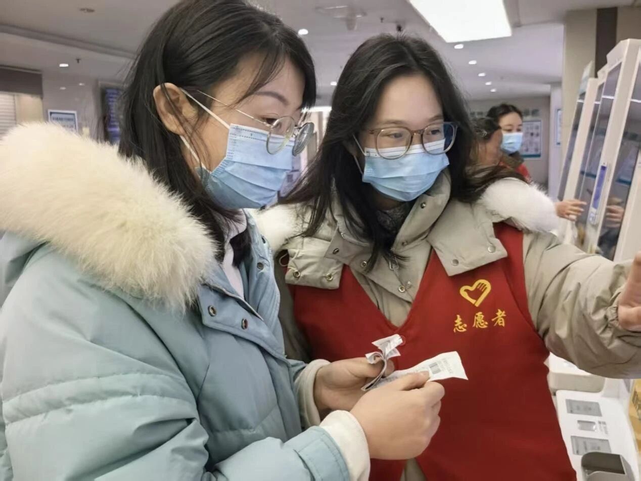 2026年1月20日汤蓉蓉志愿者在自助挂号机区域协助患者挂号