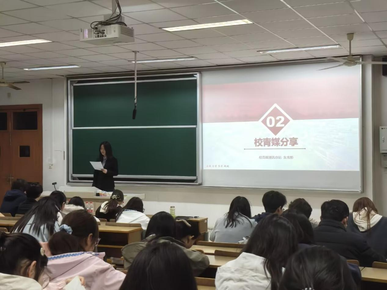 校青媒朱雪彤同学从内宣与外宣两个维度,讲解了实践宣传投稿的具体要求。在内宣方面,她详细介绍了南财百舸平台的投稿规范、审核流程和注意事项;在外宣方面,重点讲解了中国青年网的投稿要求,建议大家尽早准备、提前投稿,把握好时间节点,提升稿件录用率。她还对文字、图片、视频三类作品的基本标准做了说明,为同学们做好实践成果的宣传提供了切实可行的参考。